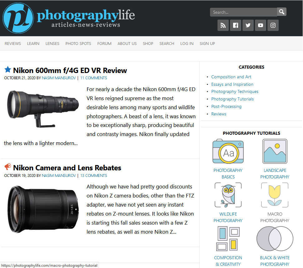 The internet is filled with photography websites that share interesting techniques and tutorials, because there is always something to learn about this art. In recent years there has been an explosion of interest in photography that has been fueled by the abundance of relatively inexpensive camera phones, and the ease of sharing your “captures” on social media. Below I’ve listed a few of my favorite “go to” photography websites. Enjoy!